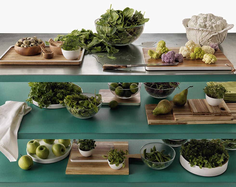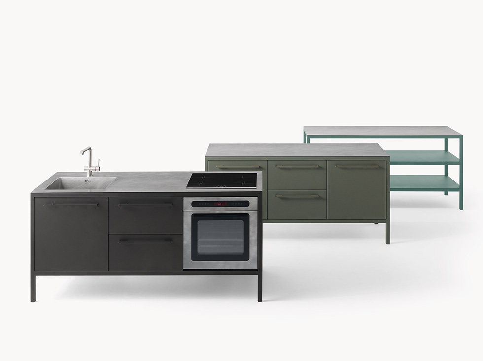 I banconi Frame sono proposti con top in acciaio Barazza, in Fenix NTM o in metallo verniciato. Il telaio, in tubo quadro saldato, è sempre in vista ed è garanzia di grande solidità.