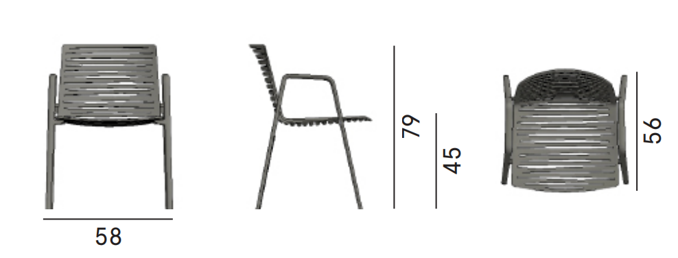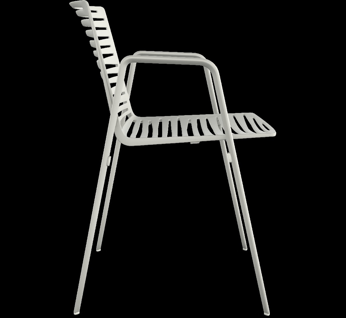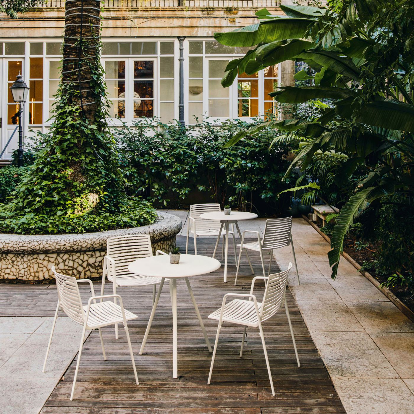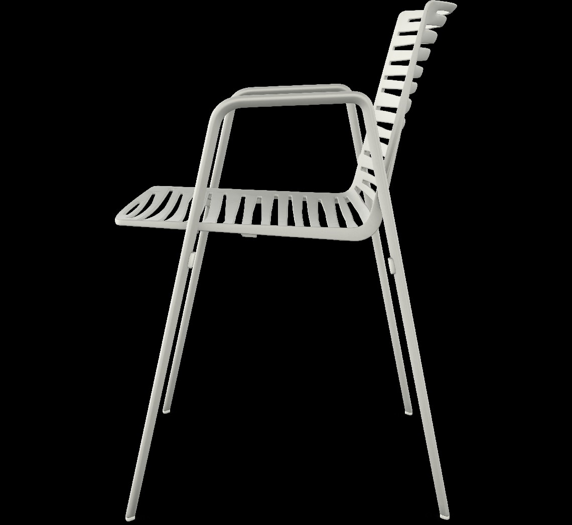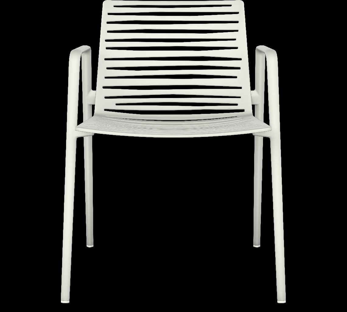 The encounter between the solidity of the material and the light weight of the shapes. In the Zebra collection, the die cast aluminium is structured by removal, which with a game of blocks and voids, illuminated by the sun, designs mesmerising geometric shapes on the ground. For even greater comfort, cushions are available for the seat and backrest, covered with fabrics which are suitable for outdoor use: resistant to water, to stains, to UV rays, and to abrasions.