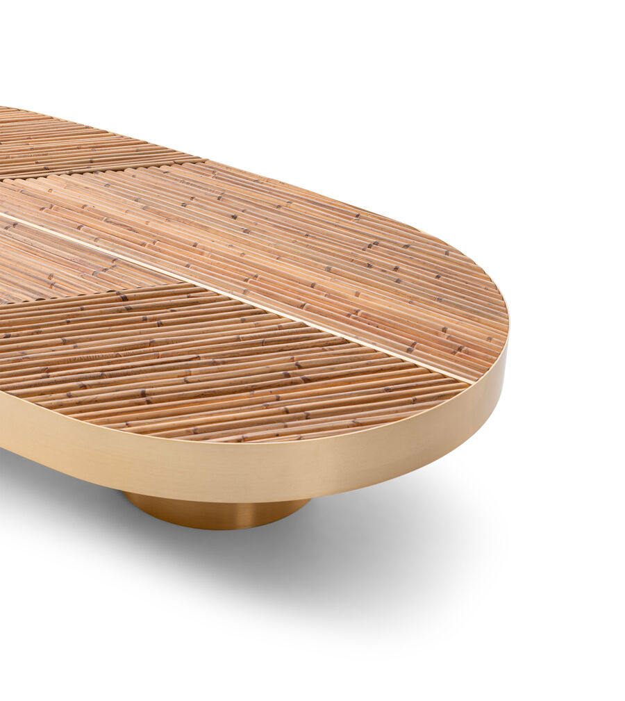 The Astuccio Canes series of side and coffee tables by Chiara Andreatti are the ideal addition to bedroom and living room decors. Available in round and oval versions, their innovative design combines natural wood and bamboo elements with brushed gold finishes in an artful and stylish contrast of materials. With large, medium and small options to choose from, they can be grouped as a set or strategically placed in different zones of the home.