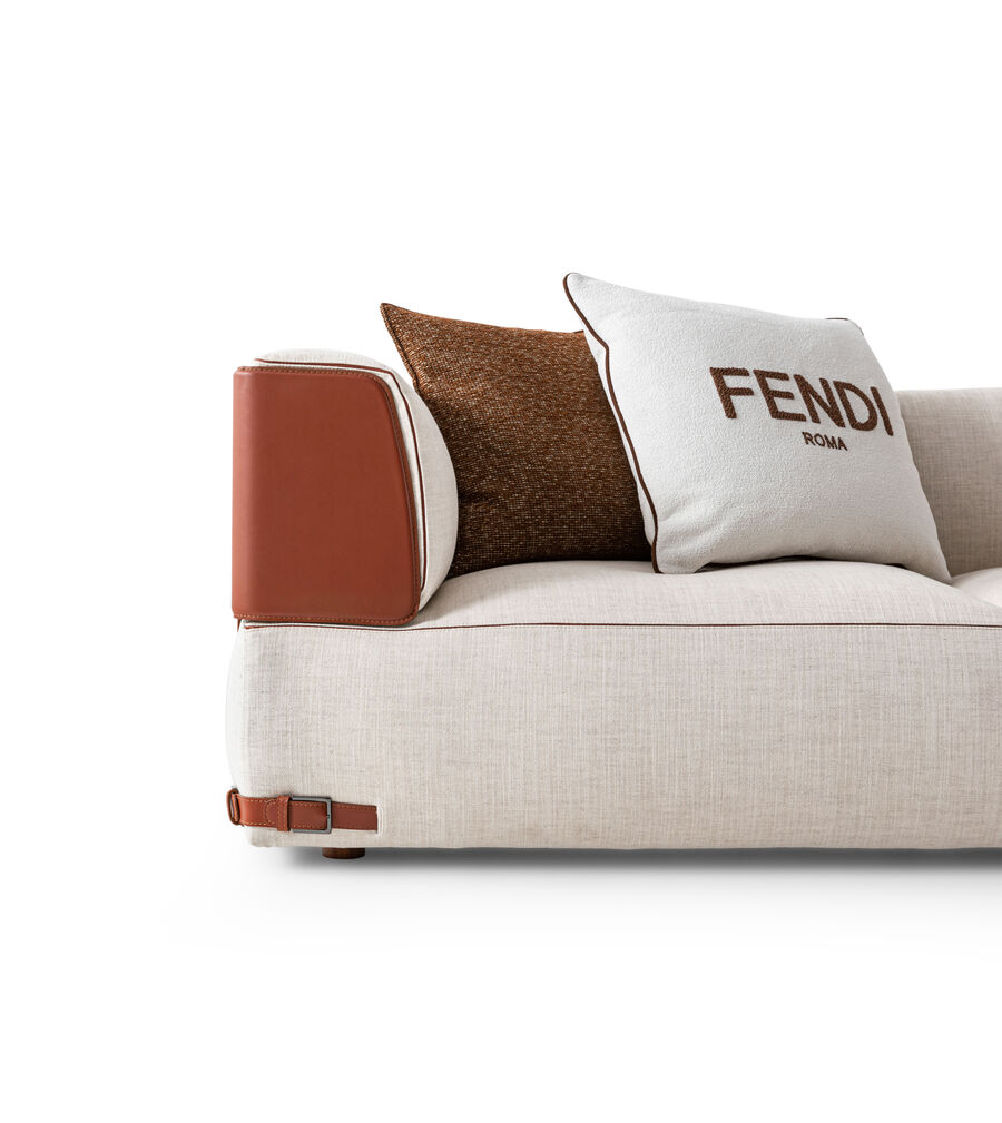 With its pleasing harmony of volumes and ample, inviting forms, the soft, contemporary design of the two-and three-seater Soho sofa continues to stand the test of time. In this revisited version, raw-cut leather edging channels the unmistakable savoir-faire of the Maison and natural shades of fabric and leather are embellished with steel buckles, a meticulous detail that creates a modern yet intimate vibe. Every piece in the Soho modular collection is designed to combine with each other to offer a myriad of furnishing solutions.