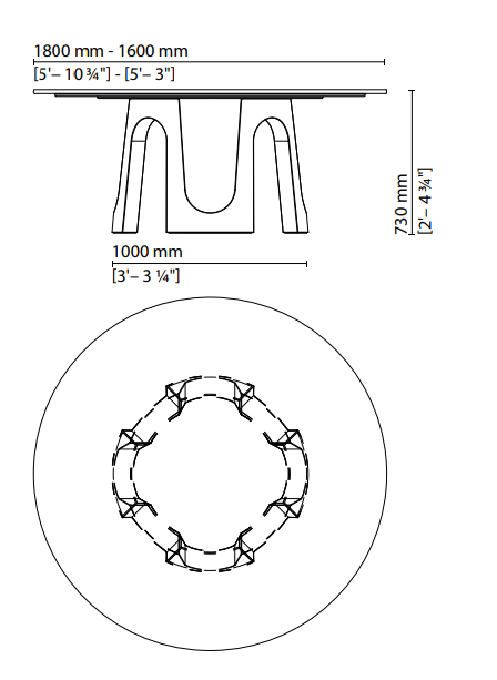 A generously-proportioned round table with a monolithic structure, crafted from a single block of marble. The base forms a series of arches, interpreting the classic Fendi symbol as a modular sequence resembling the letters A and V. Epitomising a true object of design, it is available with a top in Nero Marquinia or Bianco Carrara marble or any of the matt woods from the collection.