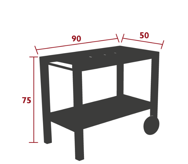 Proposer un mobilier à la fois desserte, support de plancha, tendance, pratique et universel avec deux roulettes pour plus de mobilité. Avec un design simple et graphique, ce support joue la star aux moments des repas !