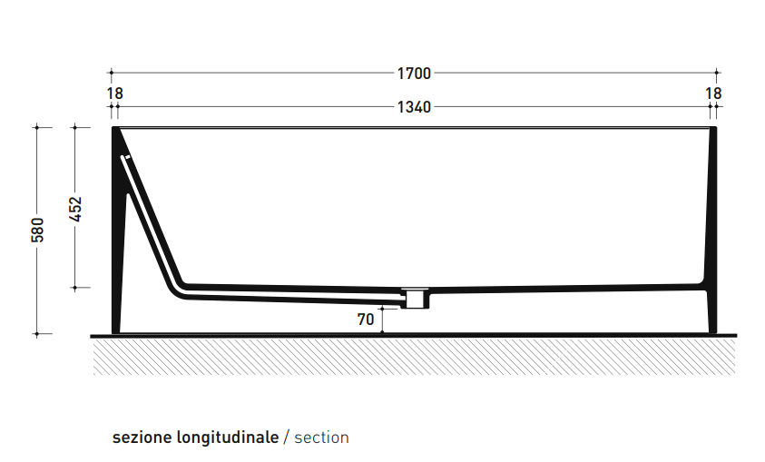 Bath-tub 170 cm in Pietraluce with overflow