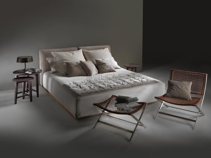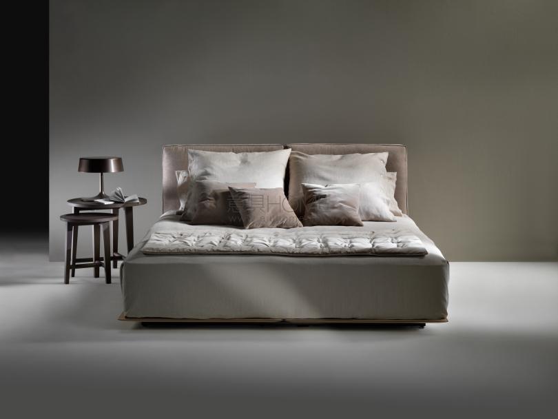 Grandemare床與同名沙發(fā)一樣,秉承低調(diào)的設(shè)計(jì)理念,但采用了豐富的設(shè)計(jì)方案,包括隱藏式的方案,使之呈現(xiàn)出卓越的品質(zhì)。 寬大的床頭板呈幾何造型,線條柔和,放置在風(fēng)格嚴(yán)謹(jǐn)?shù)拇舶迳希舶鍨槟局疲砻娓采w皮革。 床頭板的面料可采用織物或真皮。 覆蓋面料均可拆卸,并配有同色或撞色對(duì)比的羅緞滾邊。 金屬邊框經(jīng)過(guò)環(huán)氧粉末烤箱上釉,相對(duì)于皮革平板位置更靠后,令Grandemare床呈現(xiàn)出懸浮的觀感。
