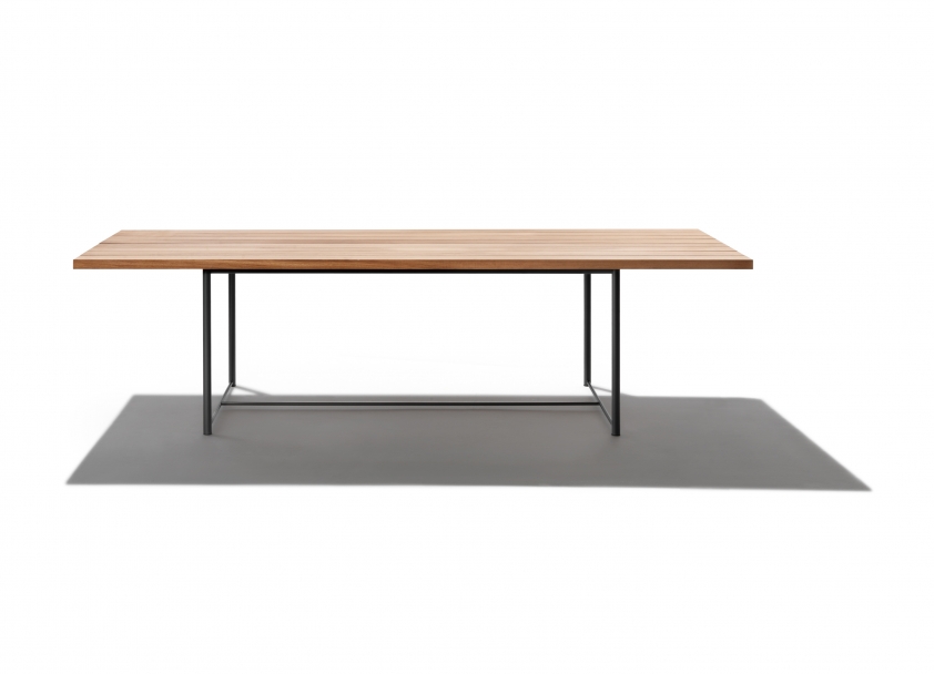 這款午餐桌的特點(diǎn)是追求簡約的設(shè)計(jì),以及有趣的材質(zhì)對比:316奧氏體不銹鋼底座的肅穆,搭配大綠柄桑木芯材板條桌面的溫暖質(zhì)感,桌面顏色有天然、白漆或灰色。 鋼材底座也提供環(huán)氧粉末噴漆的表面處理,可選白色、卡其綠、酒紅色和磨光。