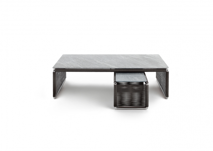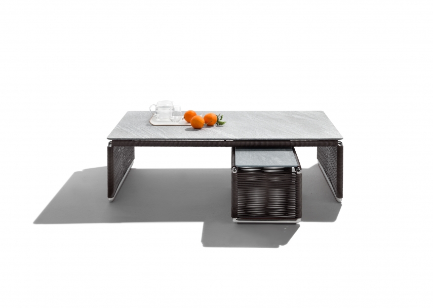 Tindari Outdoor茶幾完美詮釋了Flexform的一個珍貴主題,即編織。 茶幾的結(jié)構(gòu)采用擠壓鋁材,表面涂層為環(huán)氧粉末噴漆。整個結(jié)構(gòu)都包裹在輕盈結(jié)實(shí)的聚丙烯纖維或聚氨酯橡膠編織里,色彩包括天然色調(diào)、波爾多色和橄欖綠色。 巧手工匠的手工編織,為冷峻的金屬帶來溫度,帶來了一件個性鮮明的家具,可輕松搭配Flexform戶外系列的所有座椅,為露臺和陽光房的布置增添優(yōu)雅格調(diào)。 Tindari茶幾也有石材臺面的版本,可選銀色Beola石,火山石,斑巖或卡多灰沙石。