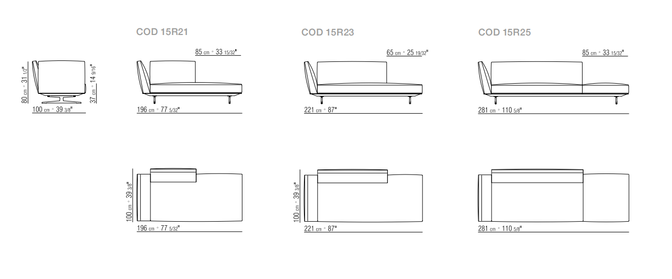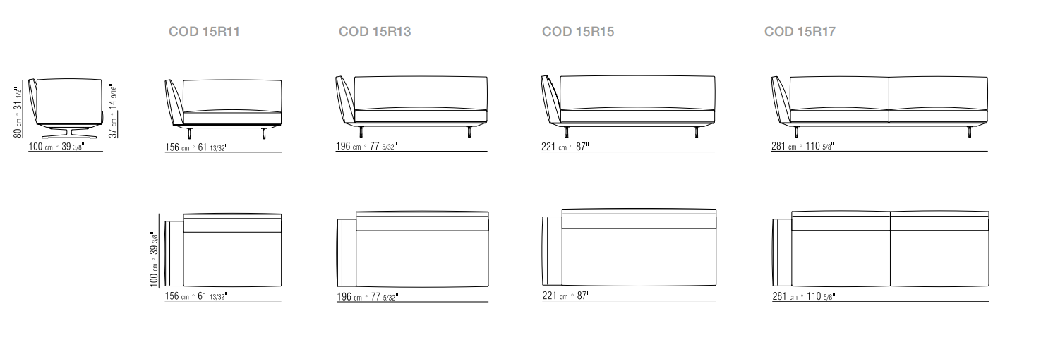 輕盈精致的美學特點,表現于把沙發托離地面的壓鑄金屬底座的設計。靠背與扶手厚度收斂,向外打開,突出了這款沙發的空靈。