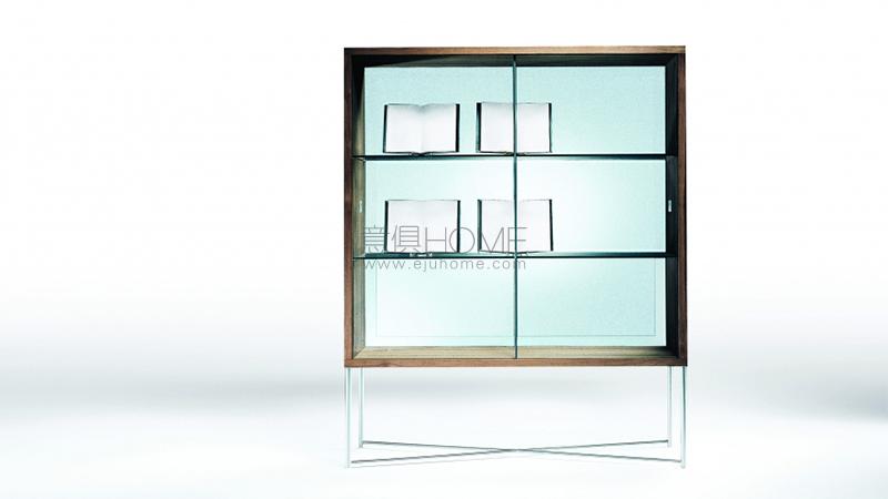 Moka陳列柜屬于Mario Asnago與Claudio Vender于1939年設計的同名系列,1985年由Flexform生產。 Moka陳列柜包含了豐富的設計用典,呼應著理性主義、藝術與建筑潮流,Mario Asnago與Claudio Vender正是在30年代的大師之間,開始了他們的職業生涯。 陳列柜的結構由一個精美的卡納萊托胡桃木或歐洲白蠟木框架構成,表面處理選擇多樣。 陳列柜放置在一個輕薄優雅的金屬管框架上,表面處理可選鋁色、白色與黑色漆面,在坐地的部分構成考究的十字圖案。 門板、背板與隔層板都采用玻璃,為Moka陳列柜賦予了輕盈簡約的個性,現代新潮,令人眼前一亮。