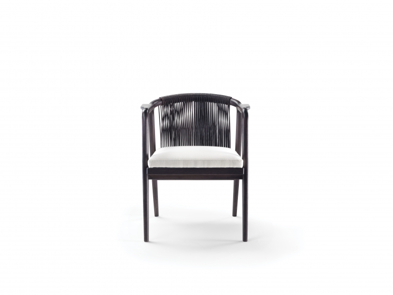 Crono小扶手椅與同名扶手椅采取同樣線條,呈現出緊湊而優美的線條。實木框架采用的是卡納萊托胡桃木或歐洲白蠟木,有多種顏色可選,加工工藝清晰展現了品牌傳承意大利木工傳統的態度。 靠背展現出獨特考究的加工,以皮革繩索純手工編織而成,座椅具有延展性聚氨酯填充料,表面覆蓋雙層織物,外層椅套為織物或真皮,可拆卸。
