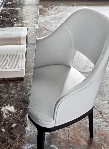 Judit是一款午餐椅和小扶手椅,具有優(yōu)雅的輪廓造型,散發(fā)著復古韻味,精致的底座帶有歐洲白蠟木實木椅腿,可漆成不同顏色。 結構性聚氨酯填充框架,表面覆蓋雙層保護面料,保證最佳的舒適性。以扶手椅作為餐桌主位,與普通椅子搭配使用,將帶來令人眼前一亮的效果。