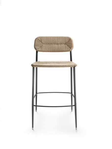 上升形成金屬靠背的蜿蜒結(jié)構(gòu)具有噴漆面,而緊密編織的座椅材料則完全由紙繩或紙拉繩手工制成。