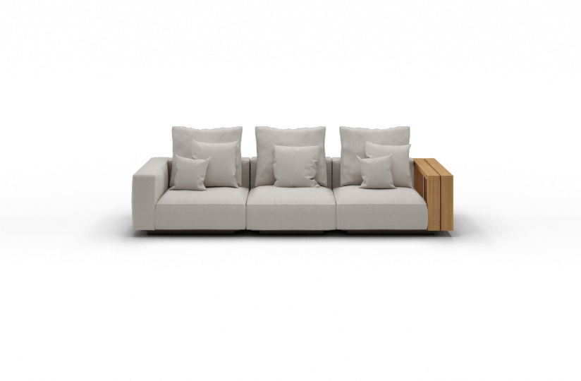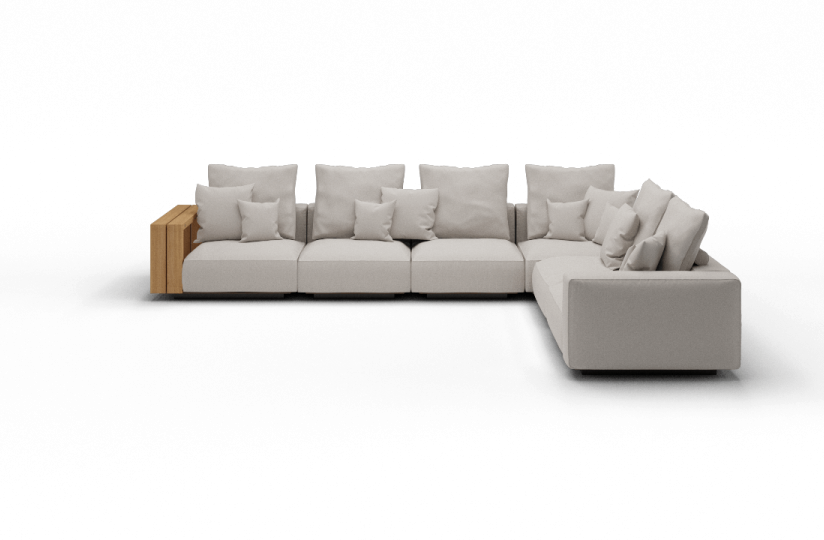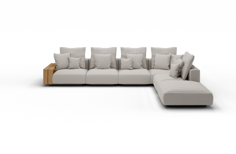 代替傳統的軟墊扶手,完全由實色iroko木材制成的元件可以用作方便的桌面表面,并帶有用于存放物品的有用隔層。