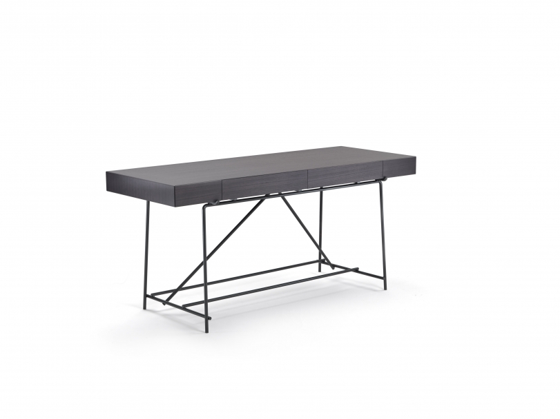 The basic idea was to set a piece of wood on a simple metal structure. The first items to grow out of this concept were a coffee/side table and a console, followed by a dining table, desk and a series of cabinets.