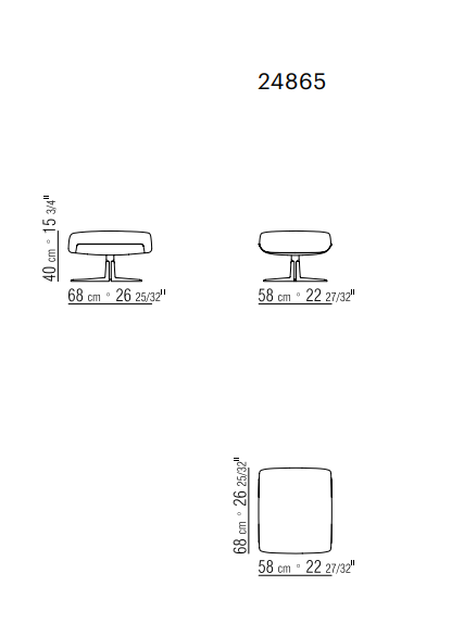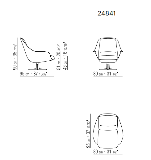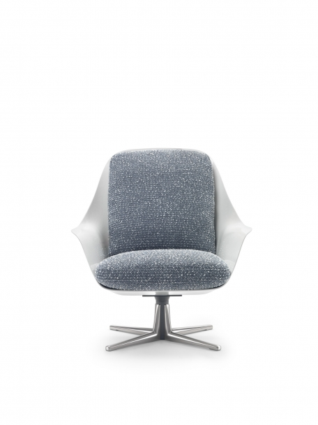 The Sveva Light armchair rests on a swivel base in cast aluminum, available in several finishes and can be paired with its namesake ottoman.
