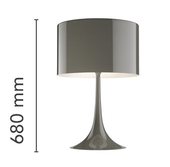 Table/desk lamp providing diffused light. Spun metal frame and diffuser, die-cast aluminum diffuser support arms and lampholder support, painted in the colors indicated below. White, injection-molded polycarbonate diffuser supports. Sandblasted pressed glass upper diffuser screen. On the cable there is the electronic dimmer which allows the regulation of light brightness.