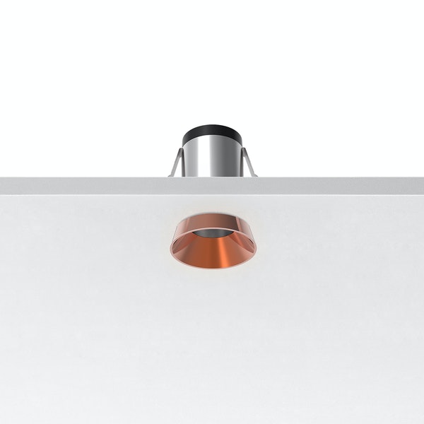 Recessed LED with an unusual design, thanks to the small edge that defines the presence of the luminaire. Comes in three sizes with different optics for a better personalisation. Pure lines highlighted with the refined finishes, in neutral and metal plated versions.