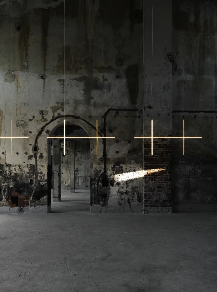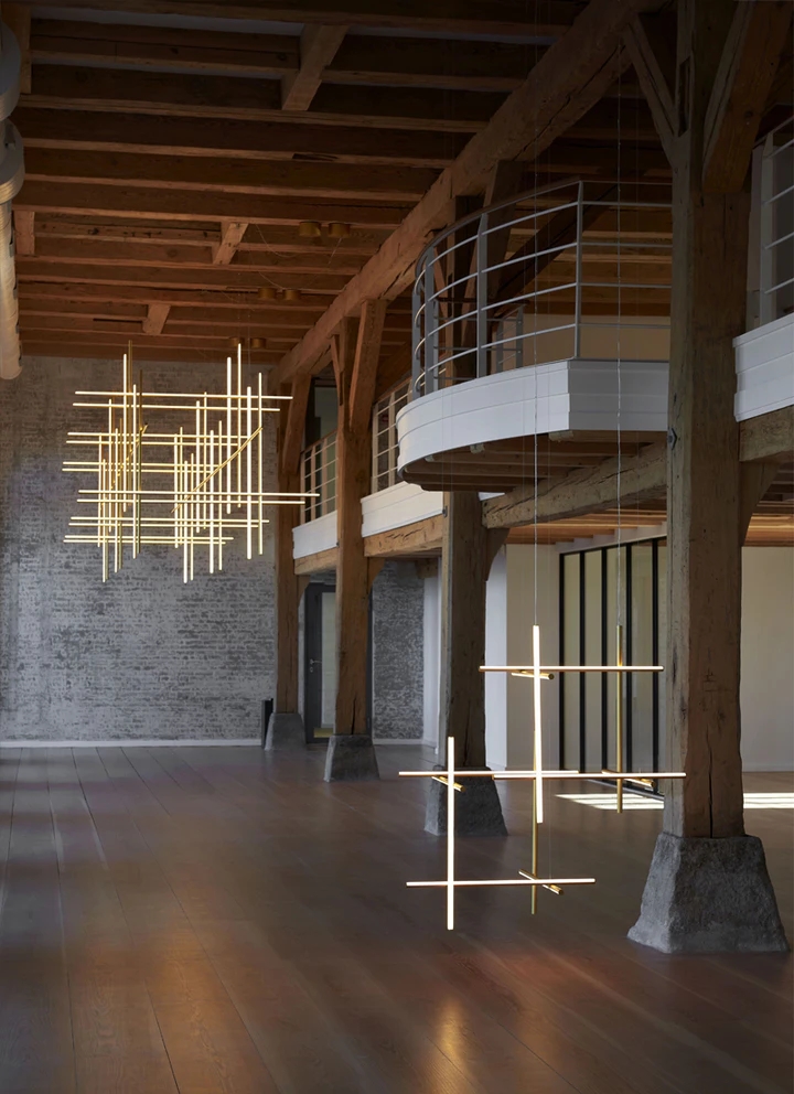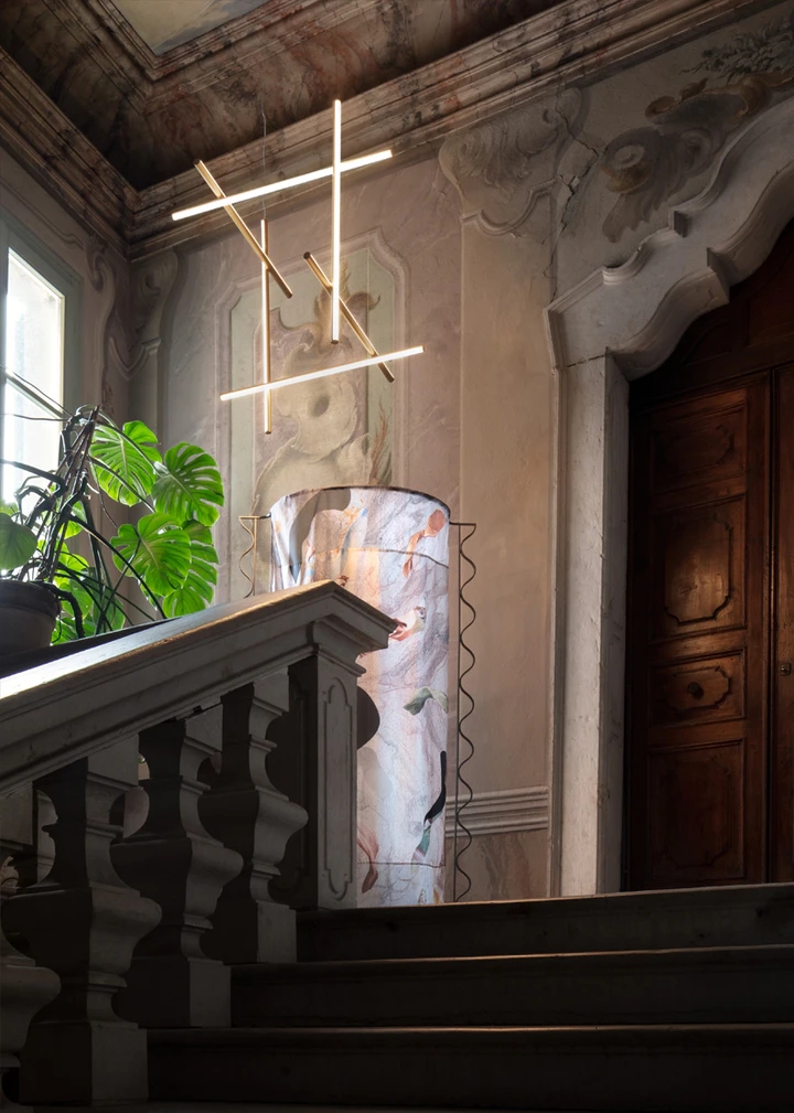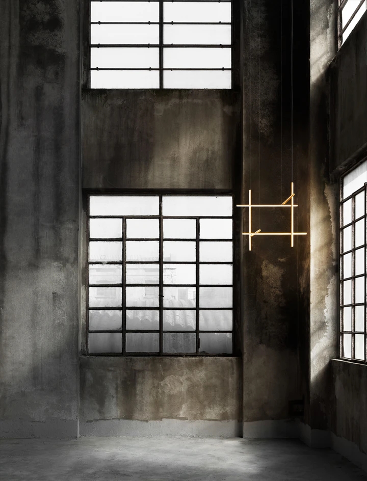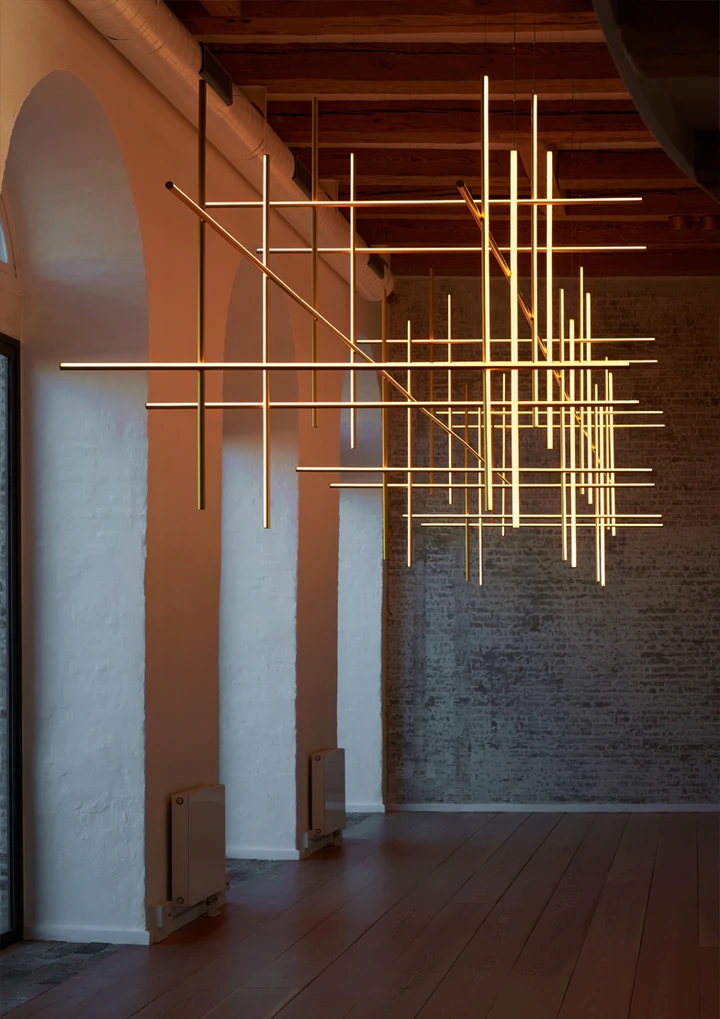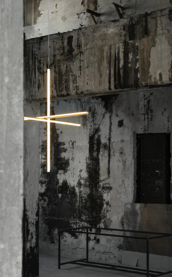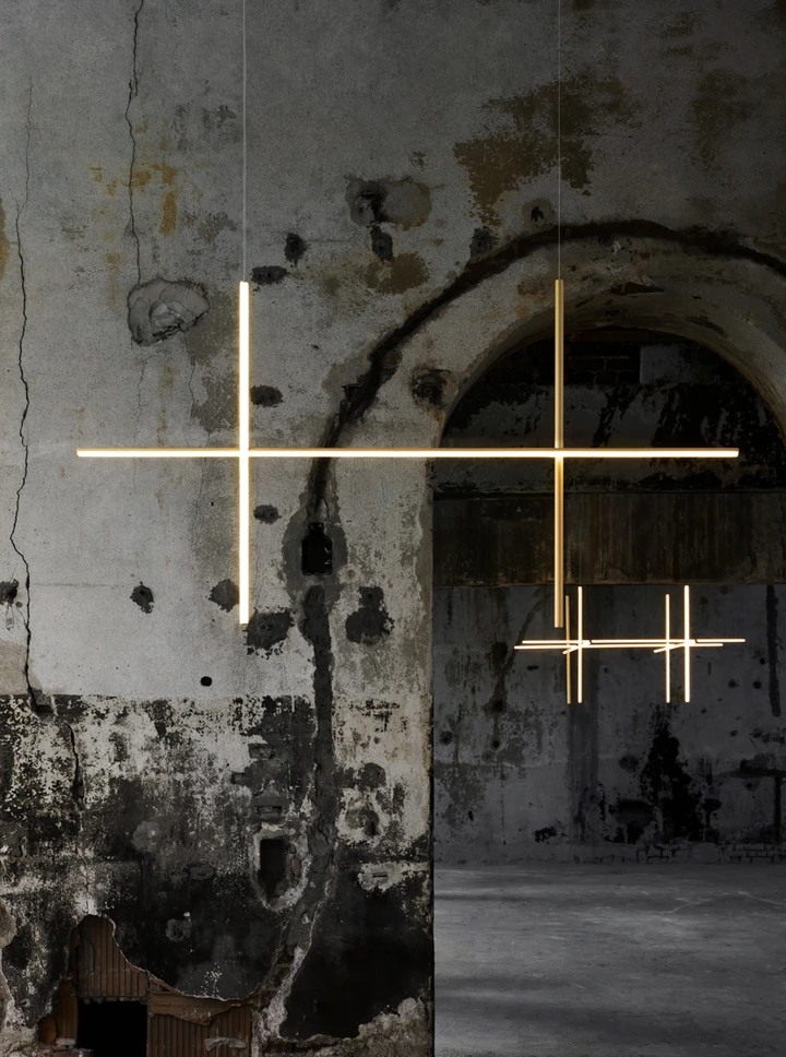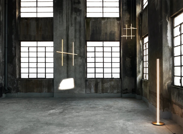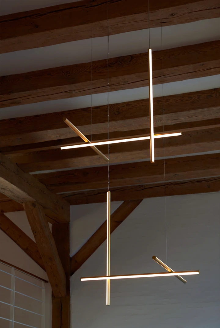 Each element of this model is made of extruded anodized aluminium with a champagne finish and a diffuser with an integrated LED strip.