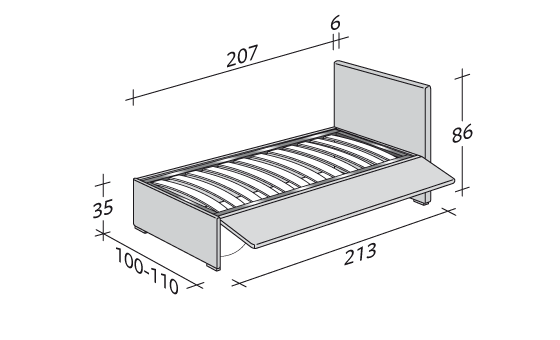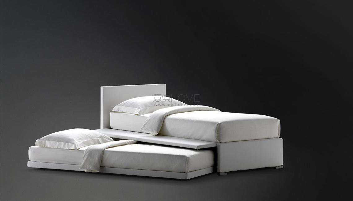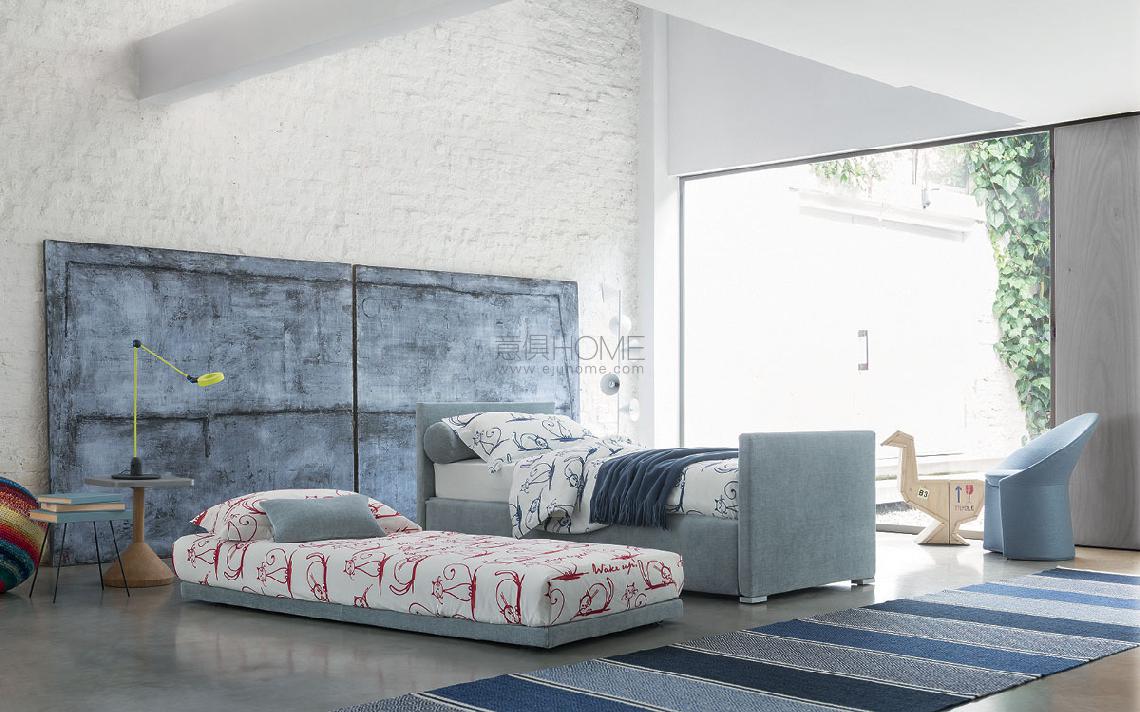 Biss是一款多功能單人床,有兩種版本:底座帶節省空間的容器或帶側開口的底座,可容納第二張折疊床。首先,床具有帶側開口的容器底座(根據需要向右或向左)。第二,床的底部有一個側面可以打開(根據需要向右或向左),以容納第二個床。后者沒有床頭板,配備有便于提取的輪子。