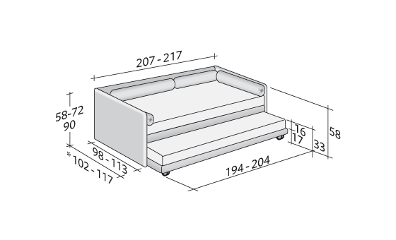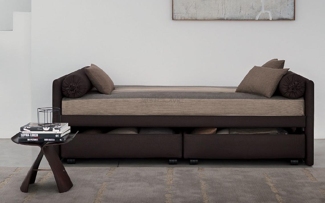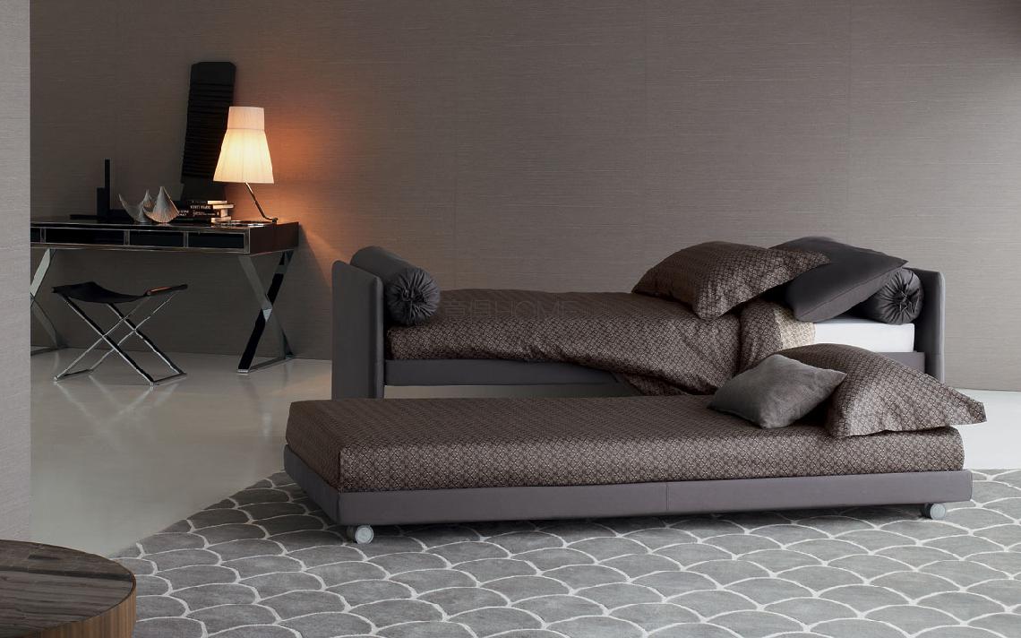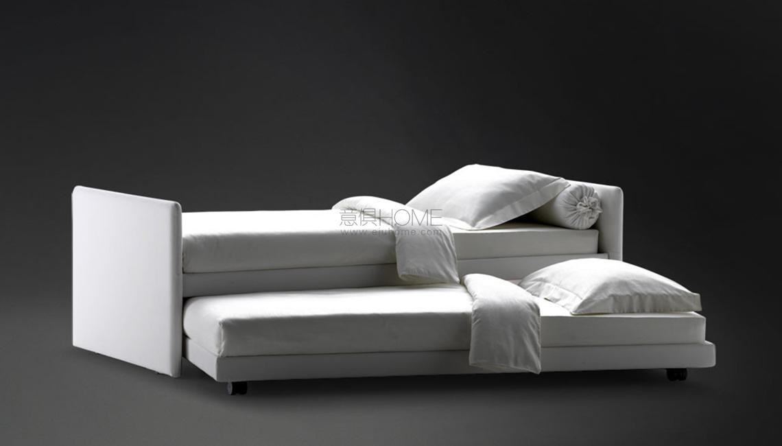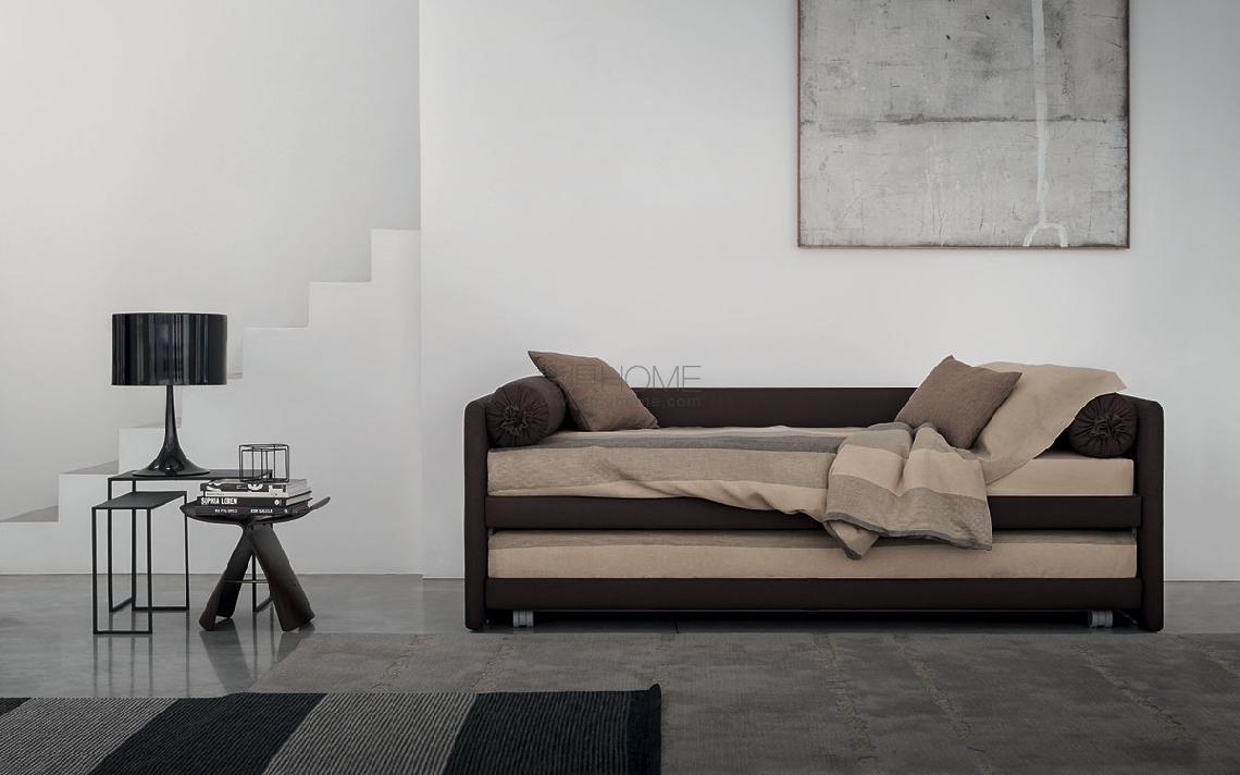 可轉(zhuǎn)換的床,簡(jiǎn)約而優(yōu)雅的設(shè)計(jì)。 完全可拆卸的布料、皮革或人造革軟墊結(jié)構(gòu)。 可提供頂部固定板條。 單人床,很容易成為一張雙人床,增加了第二個(gè)拉出式床,由于實(shí)用的氣體活塞而升高。 第二張床在第一層固定,有兩個(gè)鋼和橡膠塊。由優(yōu)雅的打開(kāi)式貝雷帽,枕套袋和滾輪墊組成,可以通過(guò)增加靠背來(lái)調(diào)節(jié)。從2014年起,還提供帶有“shabby chic”床裙的柔性版本,其中包括成型墊子,使座椅在用作沙發(fā)床或沙發(fā)時(shí)更舒適。