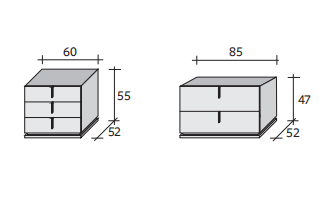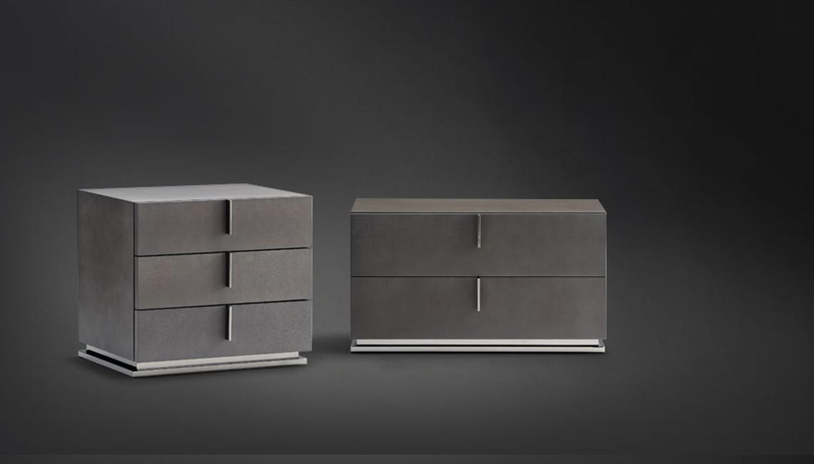 床頭柜和七斗柜其結構部分是珍貴的實木,面漆為啞光或拋光,有兩種顏色可供選擇:瀉湖藍色和沙漠卡其色。