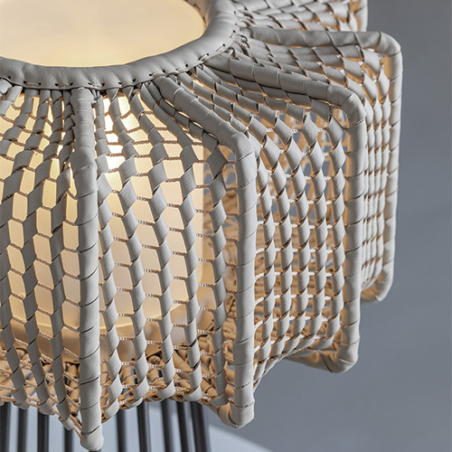 Arno燈具系列無論落地燈或臺燈,都是相當精致而富有現代氣息的產品,高貴氣質從細節和純熟的制造中流露出來。皮料是Arno燈具系列的主角,是這類產品中難得一見的元素。燈罩設計采用古老的皮革編織鞣制工藝,金屬支撐結構傳遞出流暢、簡約和支撐感,與燈罩形成鮮明對比。