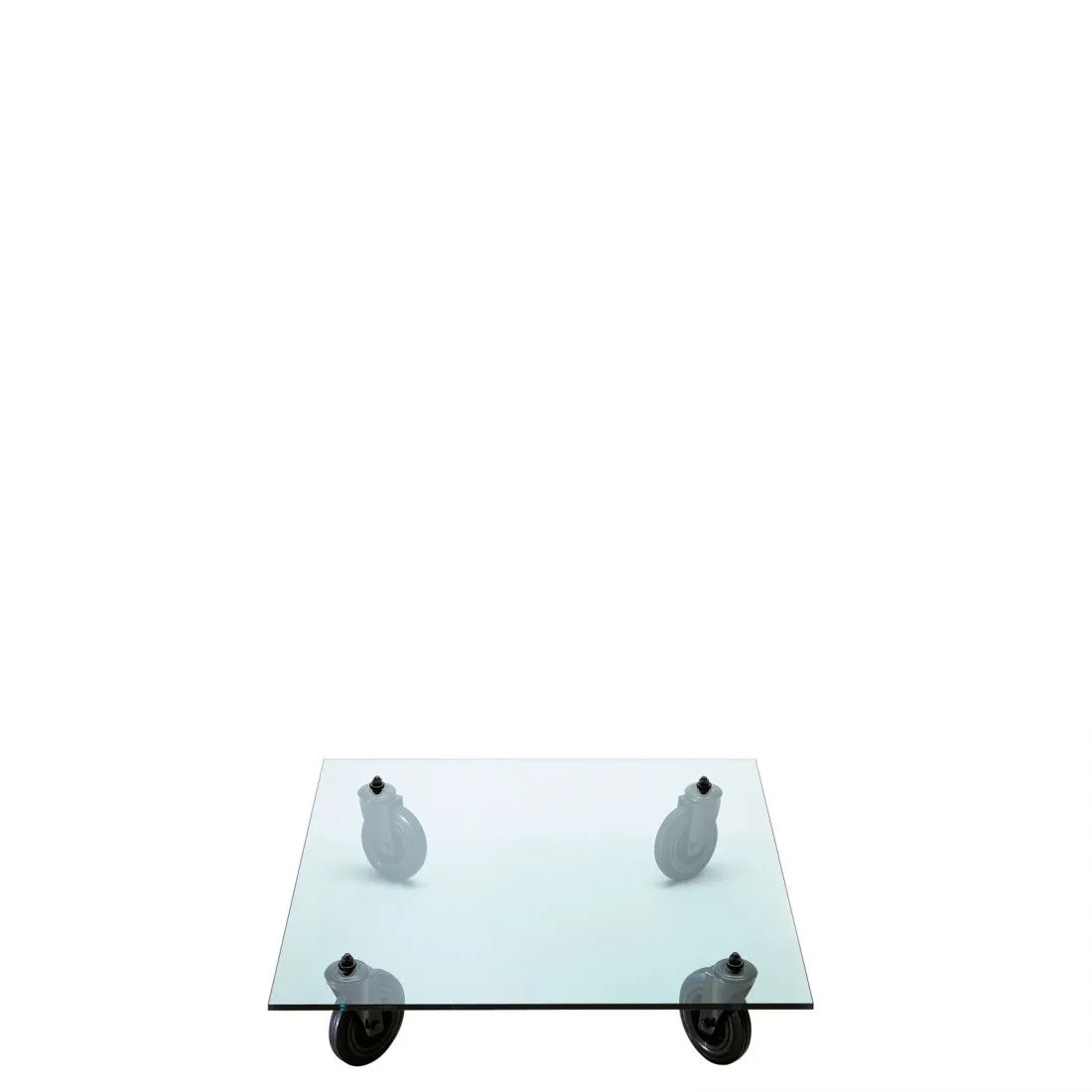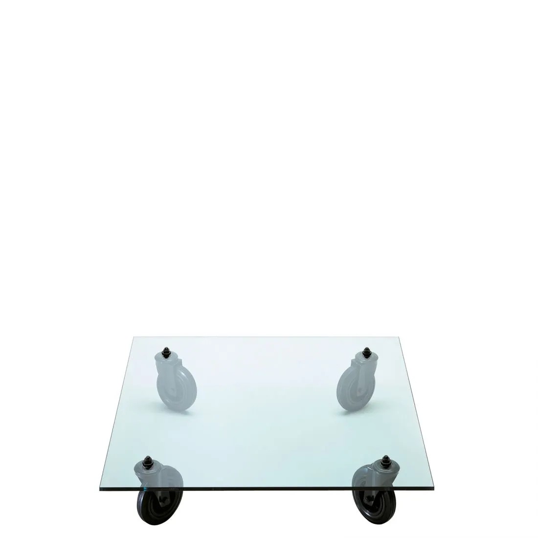 Un carrello industriale utilizzato nella sede di FontanaArte per il trasporto di vetri: è questo l’oggetto che ha ispirato Gae Aulenti nella progettazione di Tavolo con Ruote, esempio di una progettualità intuitiva nata dall’associazione con strumenti di uso quotidiano e tradotta in prototipo senza passare per il disegno. Nel progetto di Tavolo con Ruote il piano di legno del carrello industriale viene sostituito con una spessa lastra in vetro molato -simbolo della storia produttiva dell’azienda – a cui vengono fissate le rotelle industriali a movimento libero. E’ così che la sostituzione di un semplice elemento trasforma la natura dell’oggetto e la sua destinazione d’uso.