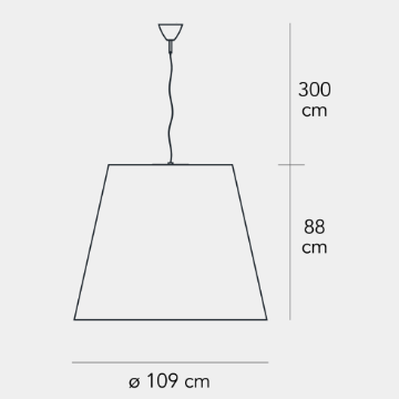 Interpretazione extralarge del classico paralume FontanaArte, Amax è una famiglia di lampade da sospensione che prevede, nelle misure più grandi, un disco di chiusura inferiore che copre la vista delle sorgenti luminose.