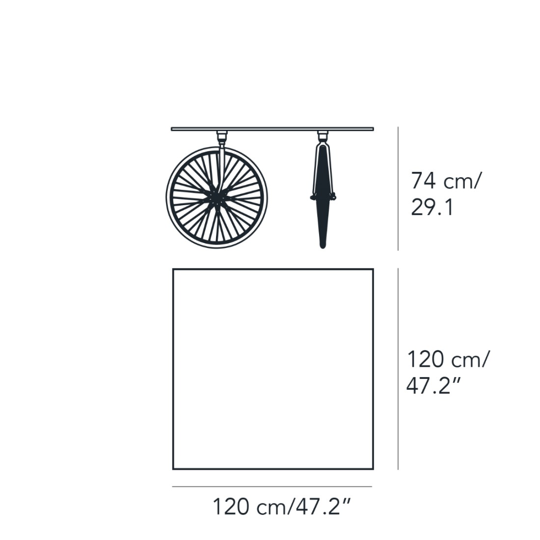 Tour rappresenta la declinazione successiva del Tavolo con Ruote. Dotato anch’esso di ruote, in questo caso di bicicletta, è un pezzo sorprendente.