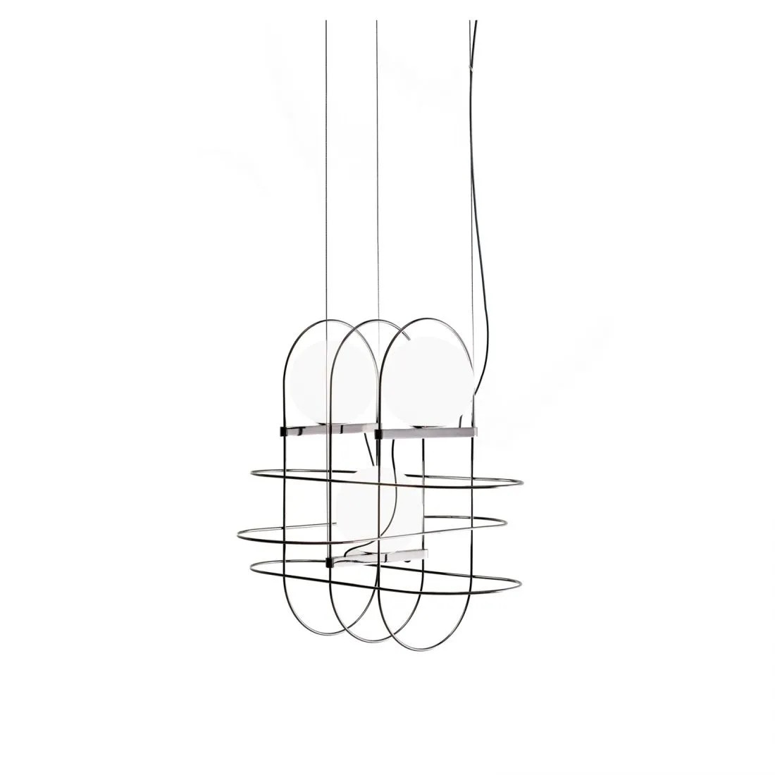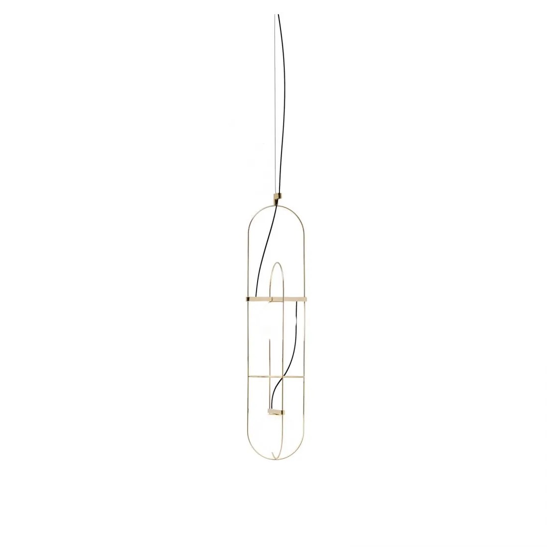 Setareh nasce dal tema di dare corpo alla luce. La lampada è composta da una sfera magicamente sospesa all’interno di una struttura metallica sottile. Un gioco di masse e di traiettorie circolari genera un disegno bilanciato di dinamiche gravitazionali. La luce emanata dalla sfera si diffonde sullo spazio circostante e irraggia il telaio. I riflessi del metallo rendono visibile il campo luminoso, lo spazio influenzato dalla luce, la sua aura. Il risultato è una collezione di apparecchi luminosi, declinata nella versione da tavolo e sospensione, di straordinaria grazia poetica. Setareh assume una nuova dimensione: allungata con due e tre sfere luminose, per lavorare sia singolarmente sia per moltiplicazione.