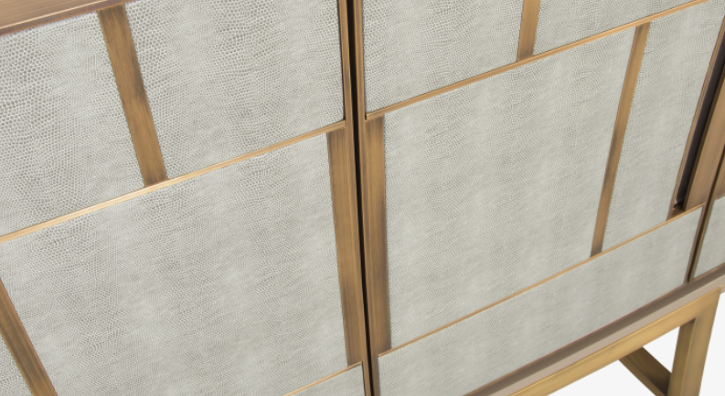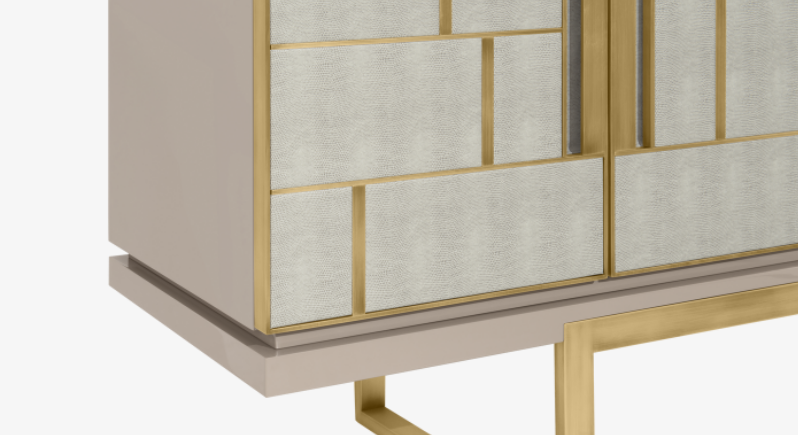 A real standout piece and a chic way to add a geometric sensibility to your space, the DIDOT sideboard’s two double doors feature brushed brass inlaid with luxurious panels of faux-animal skin.