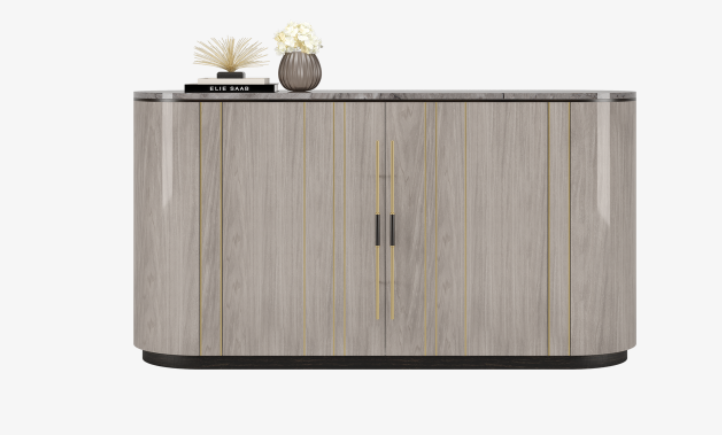 Featuring a glossy wood veneer structure, a smooth marble top and discrete handles, the understated elegance of the SALAMANCA sideboard quietly speaks volumes.