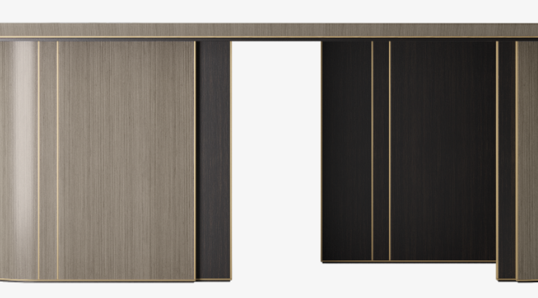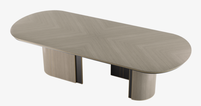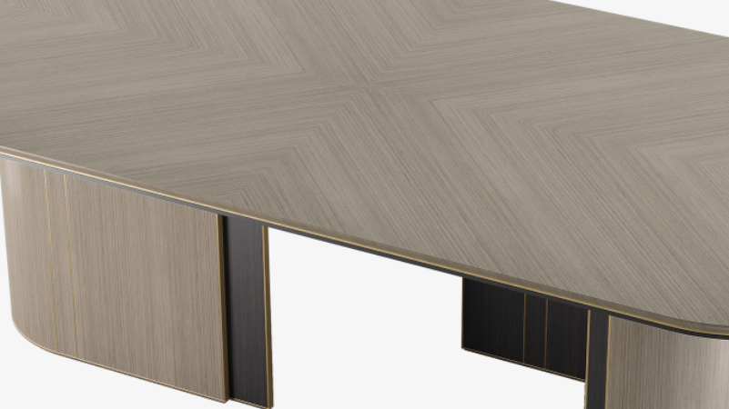 The cutting-edge TRENTO Dining Table’s wood veneer surface has been skilfully crafted to form a striking X-shaped pattern while the intriguing J-shaped legs are fashioned from overlapping layers of wood veneer in contrasting tones of light and dark.