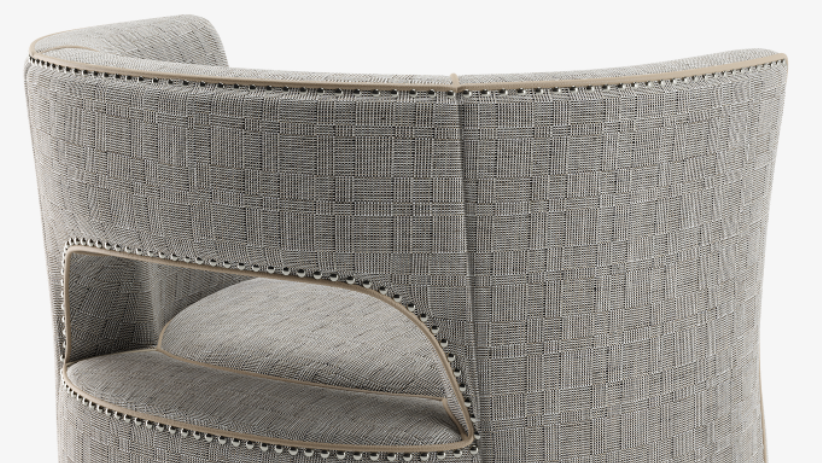 A characterful seat, the LILLE Armchair packs a lot of personality into its compact form. Signature details include an aperture backrest, solid wooden legs that gently taper, slimline piping details and rows of equidistant metal studs to the rear.