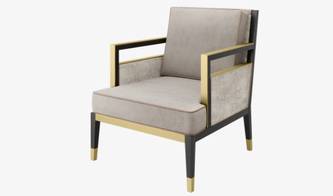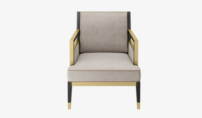 Inspired by mid-century modern aesthetics, the MONTREAL armchair adds a fresh twist with a luxurious material palette. This includes complementary upholstery fabrics, leather piping and a solid wood frame while metallic accents provide high-shine contrast.