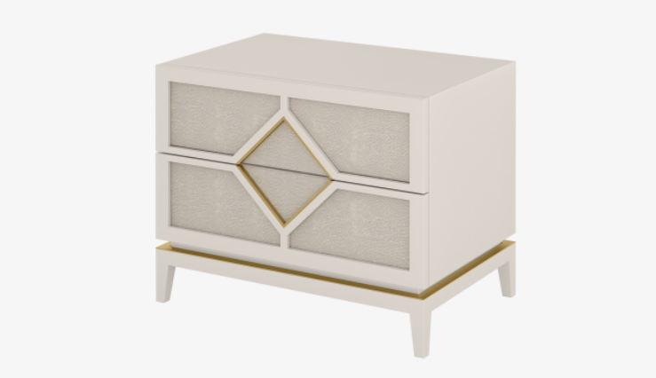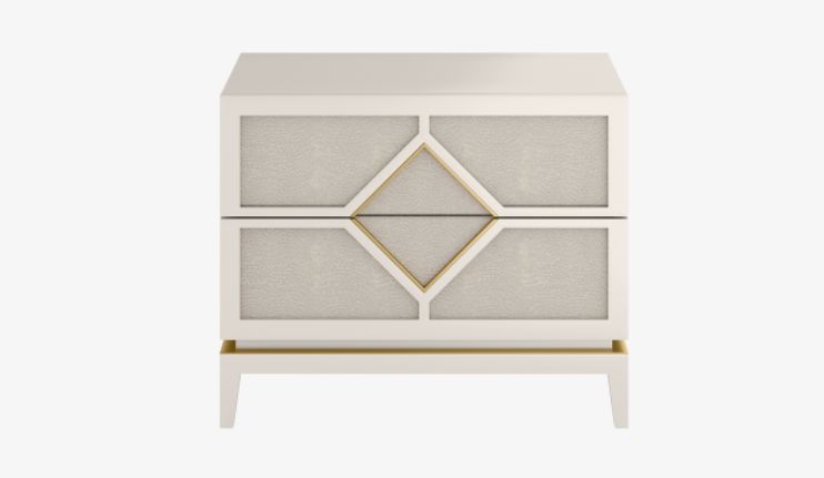 It's clear to see where the Diamond bedside table gets its quirky moniker. A clean-lined cuboid crafted from lacquered wood, the design's fretwork-style drawer fronts are edged with brass and inset with leather, while four slimline legs add to its air of elegance.