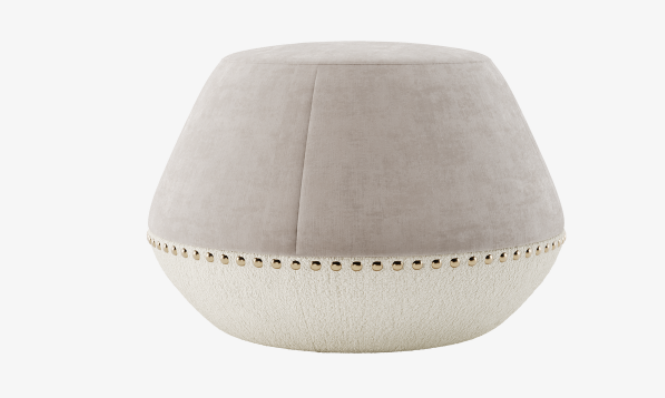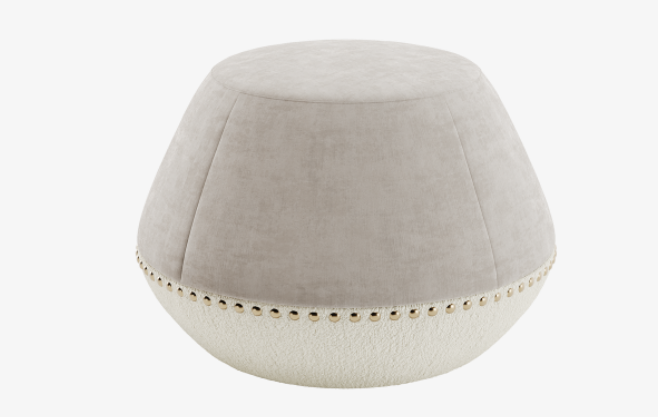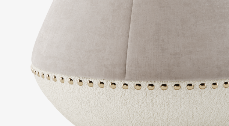 :Looking for a final piece to liven up your space? You can't go wrong with the drum-shaped NEWCASTLE stool, which features tonal velvet and fabric upholstery seamed a neat row of brass studs.