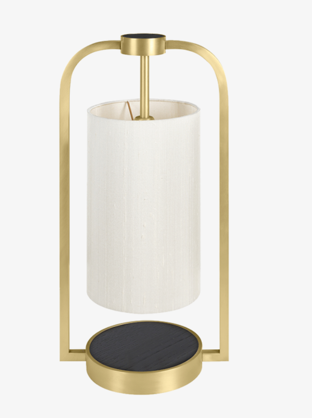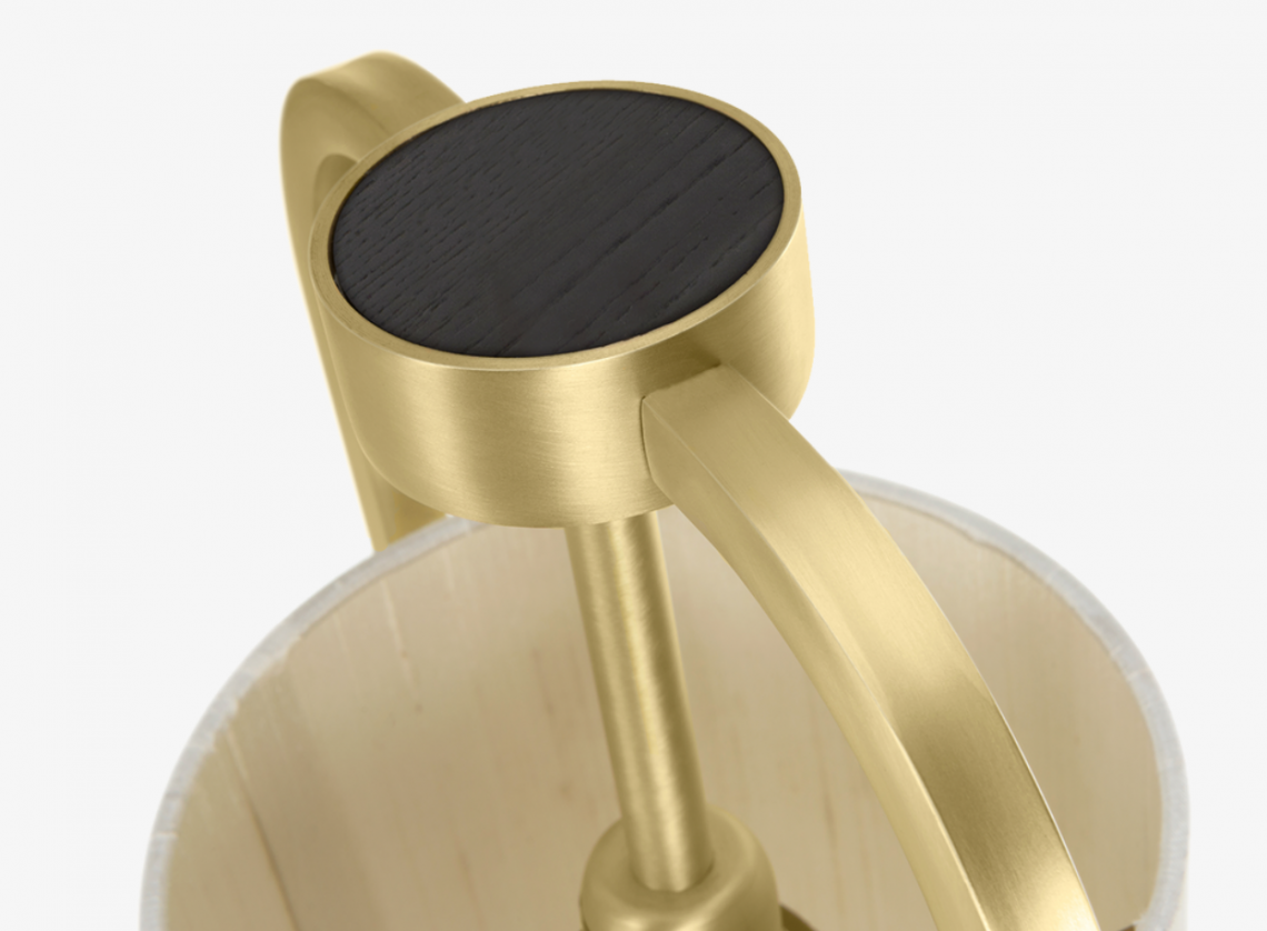 The striking VEVEY table light takes the functional form of a storm lamp and transforms it with a rich mix of materials that includes brushed brass and veneer.