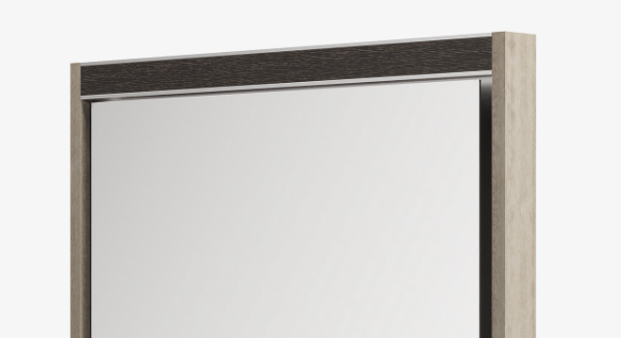 A simple rectangular shape, the classically styled SAN MARINO mirror showcases a modest cut of glass, artfully framing your reflection in a mixture of brushed brass and exotic wood veneer.