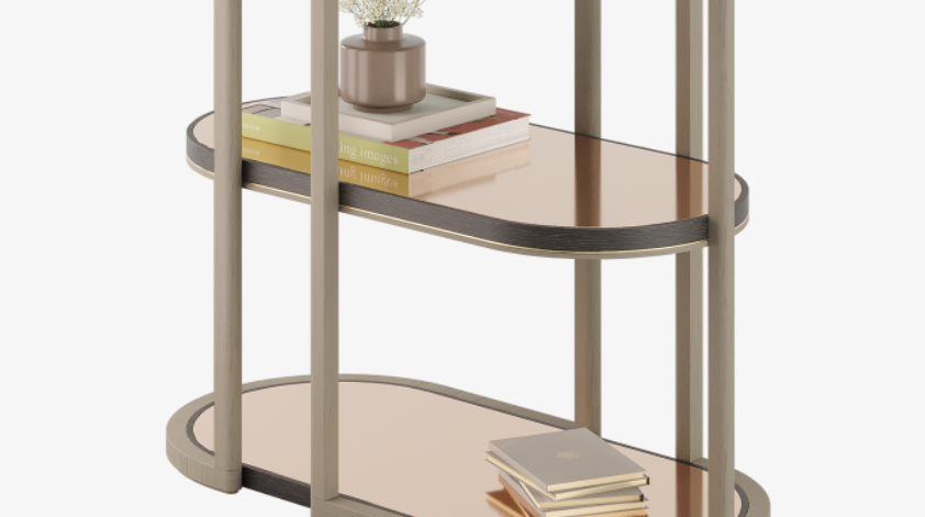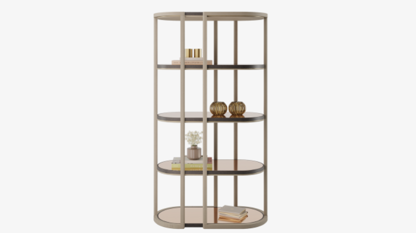 Sweeping curves define the outline of the sculptural OJAI bookcase, which features veneer shelves encased in a frame of gleaming brushed brass. Use a pair to create a striking centrepiece, or a single bookcase for an eye-catching standalone display.