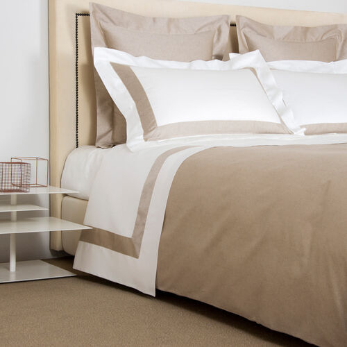 This stunning duvet cover is exquisitely sophisticated, and the elegant woven design is reminiscent of the granular pattern of certain varieties of fine leather. You can select your own fill-power of duvet filler to keep to at just the right warmth each night. The Forever Duvet Cover is perfectly matched with the other pieces in the Forever collection, and harmonizes elegantly with the Forever Border Sheet Set and shams. Create the perfect oasis of comfort and romance right at home with this luxurious duvet cover. composition: 100% cotton Made in Italy