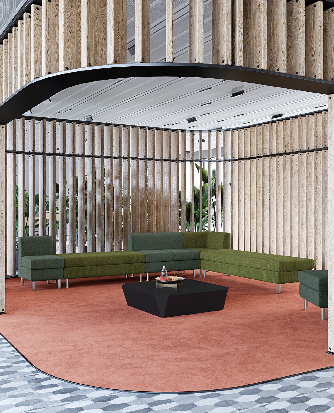 Accuratamente proporzionata e caratterizzata da forme essenziali e compatte, la collezione si contraddistingue per la sua linea senza tempo e la versatilità del sistema che consente di raggruppare tra loro i diversi elementi al fine di dar vita ad ampie e confortevoli aree lounge.