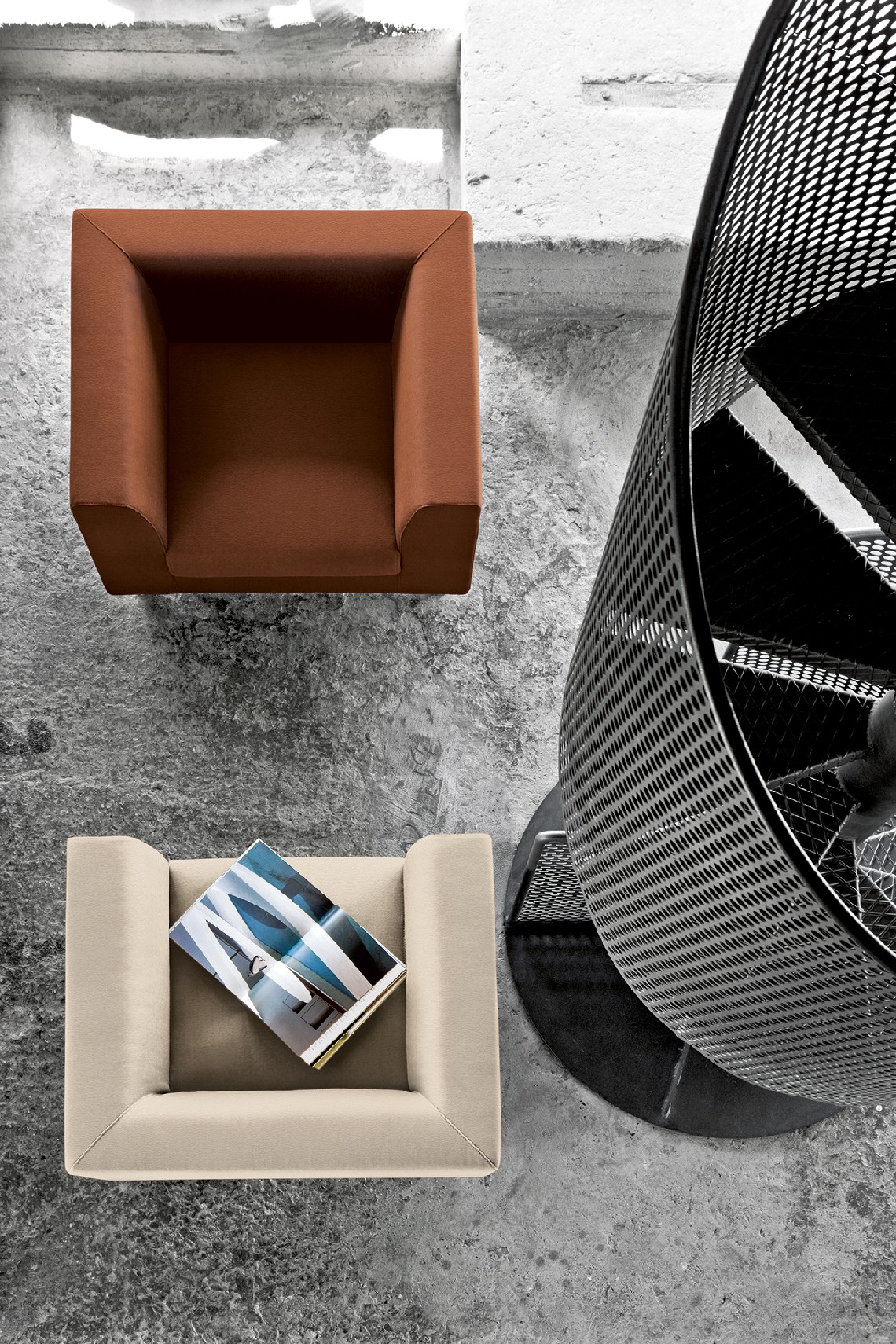 Accuratamente proporzionata e caratterizzata da forme essenziali e compatte, la collezione si contraddistingue per la sua linea senza tempo e la versatilità del sistema che consente di raggruppare tra loro i diversi elementi al fine di dar vita ad ampie e confortevoli aree lounge.