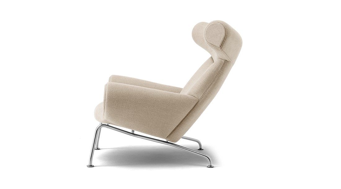 The Ox Chair by Hans J. Wegner is an iconic statement piece with an irrefutable presence. A bold, sculptural chair that challenged the understated aesthetics of Danish design at the time, with its distinctive headrest referencing ox horns and its voluminous body. It demonstrates his organic, artistic approach to furniture and desire to redefine traditional seating.
