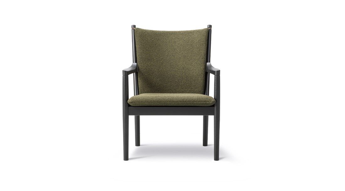 The 1788 chair features a stunning profile in the sloping armrests, reflecting Wegners signature sculptural details and talent for working with wood.