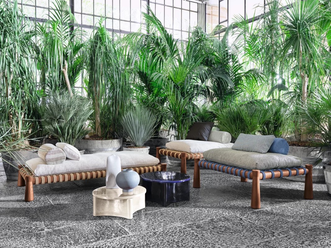 Tavolini bassi, con top tondo con base scultorea in Millgres nei colori Rosso, Bianco e blue.