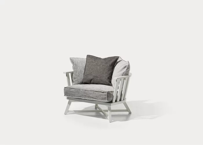 Gray 07 è una poltrona in legno il cui segno distintivo è un avvolgente schienale basso forma di semicerchio realizzato con doghe. Le gambe in legno massello si intersecano formando una croce. La struttura è realizzata in noce Canaletto verniciato naturale, rovere sbiancato o rovere laccato bianco, grigio, nero, oceano o tortora. Per un maggiore comfort un set di cuscini volanti ne accentua la morbidezza.