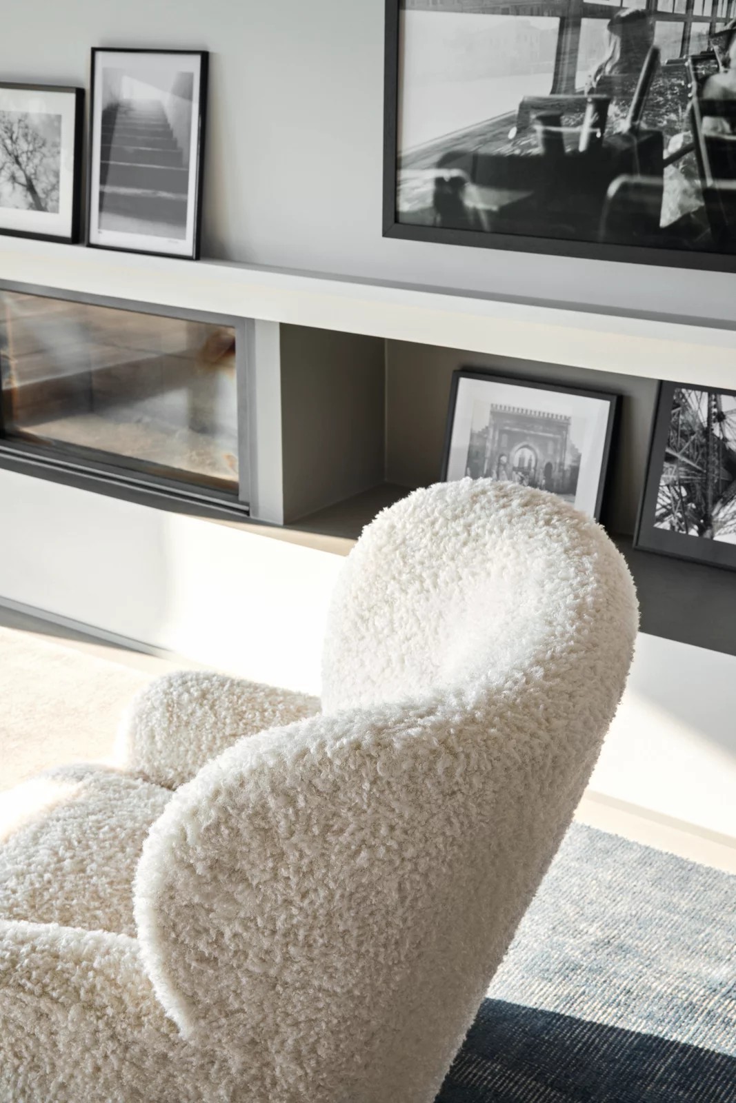 Prodotto dalla forma importante, ha una struttura avvolgente la cui particolarità si trova nelle proporzioni tra la seduta e lo schienale: quest’ultimo cinge come un nido la seduta imbottita in poliuretano espanso a quote differenziate ad alta densità. La poltrona LOLL 09 F con struttura in legno massello con molleggio da cinghie elastiche ad alta componente di caucciù, è caratterizzata da un rivestimento sfoderabile.