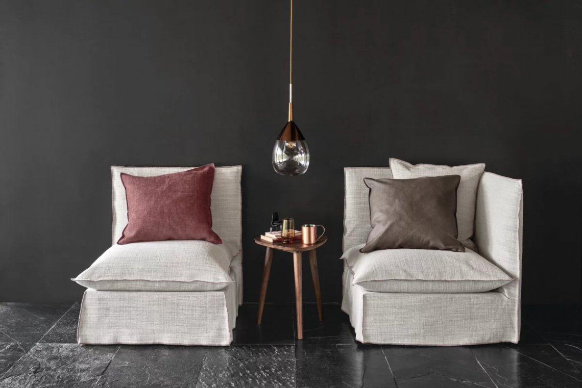 Elementi componibili di varie forme e misure, danno vita a tutte le possibili composizioni di Ghost, un divano che si sviluppa attorno ad una leggera scocca dai volumi essenziali. Realizzato da una struttura minimale e sottile imbottita in poliuretano espanso, Ghost contiene soffici cuscini volanti in misto piuma. La caratteristica principale dei divani Ghost è il rivestimento sfoderabile, una housse oversize il cui profilo è sottolineato dalle cuciture a vista, che permette ai prodotti di svestirsi e rivestirsi in un baleno. Si tratta di un progetto tessile che cambia facilmente volto, permettendo di passare da un look formale ad uno informale con facilità e velocità.