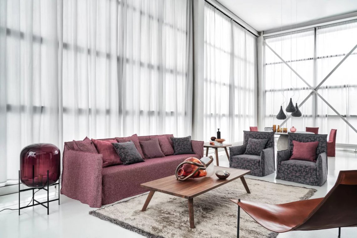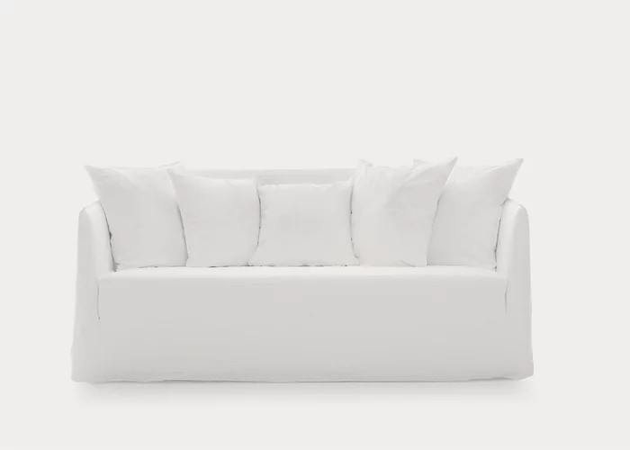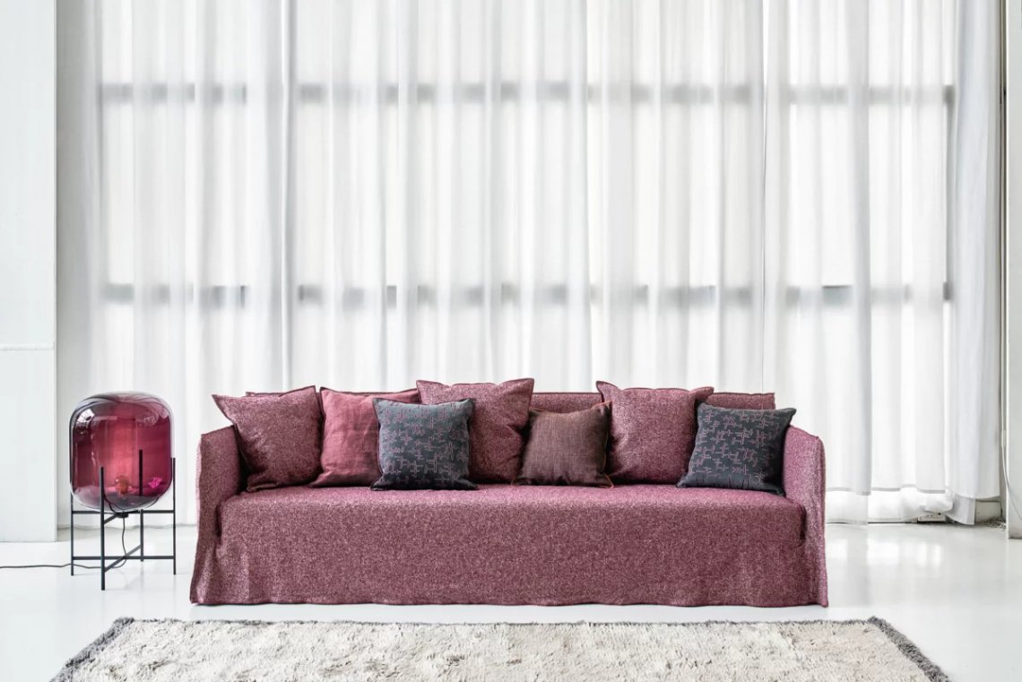 Ghost, un divano che si sviluppa attorno ad una leggera scocca dai volumi essenziali. Realizzato da una struttura minimale e sottile imbottita in poliuretano espanso, Ghost contiene soffici cuscini volanti in misto piuma. La caratteristica principale dei divani Ghost è il rivestimento sfoderabile, una housse oversize il cui profilo è sottolineato dalle cuciture a vista, che permette ai prodotti di svestirsi e rivestirsi in un baleno. Si tratta di un progetto tessile che cambia facilmente volto, permettendo di passare da un look formale ad uno informale con facilità e velocità.