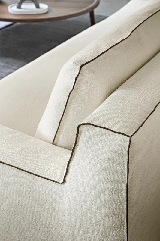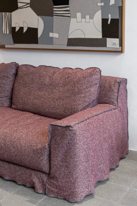 La struttura in legno massello con scocca in poliuretano espanso si unisce ad ampi cuscini di seduta e di schiena realizzati con un soffice strato di piuma d'oca canalizzata, con il recupero della tecnica tradizionale dell'uso di molle insacchettate nei cuscini seduta, per un comfort accentuato. In tutte le sue versioni, la collezione LOLL è completamente e facilmente sfoderabile.
